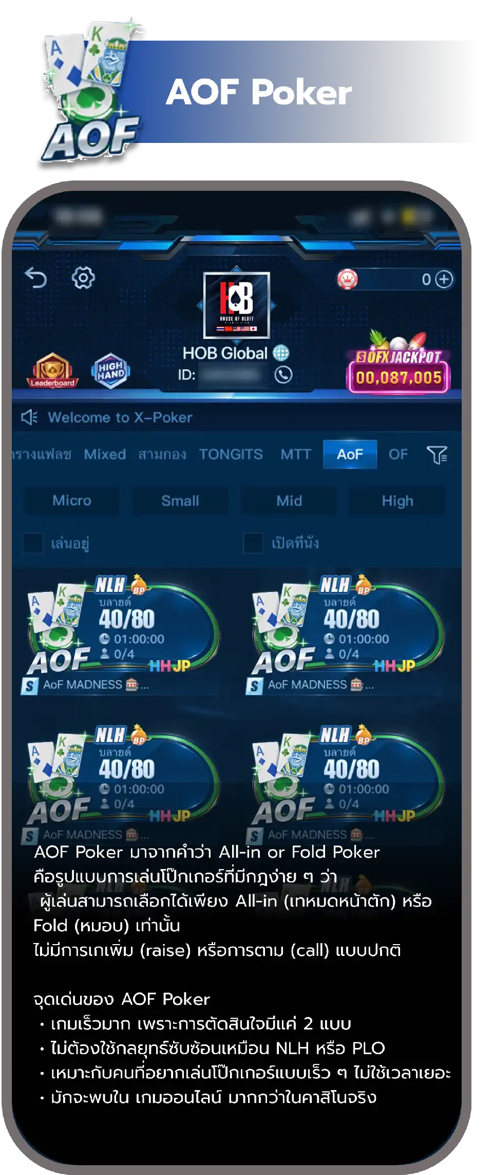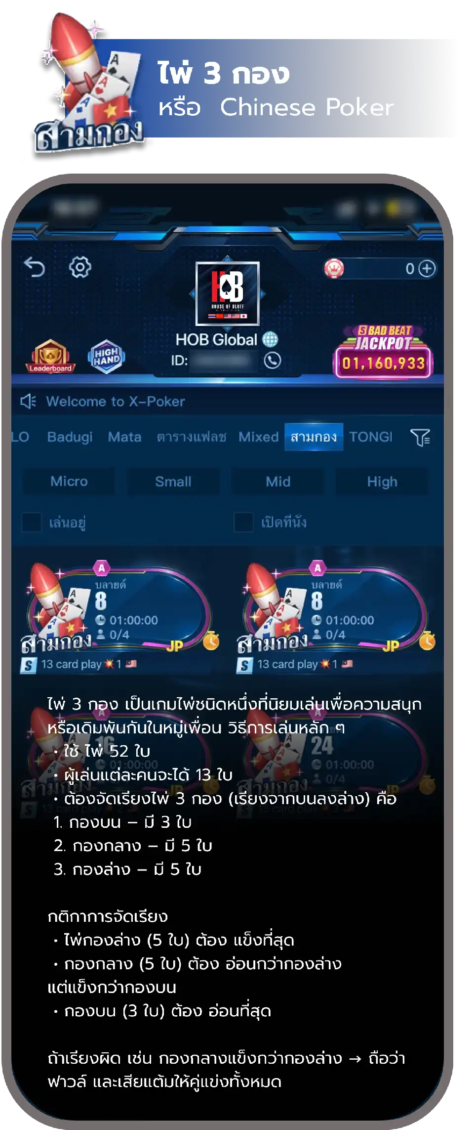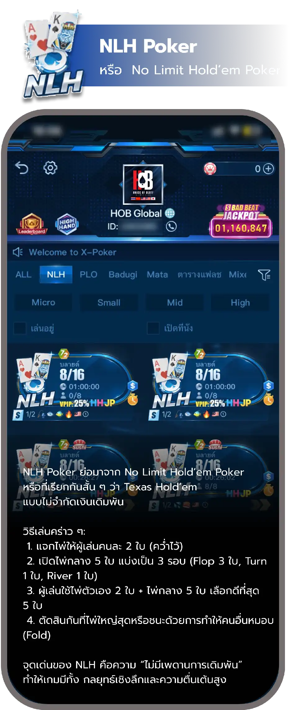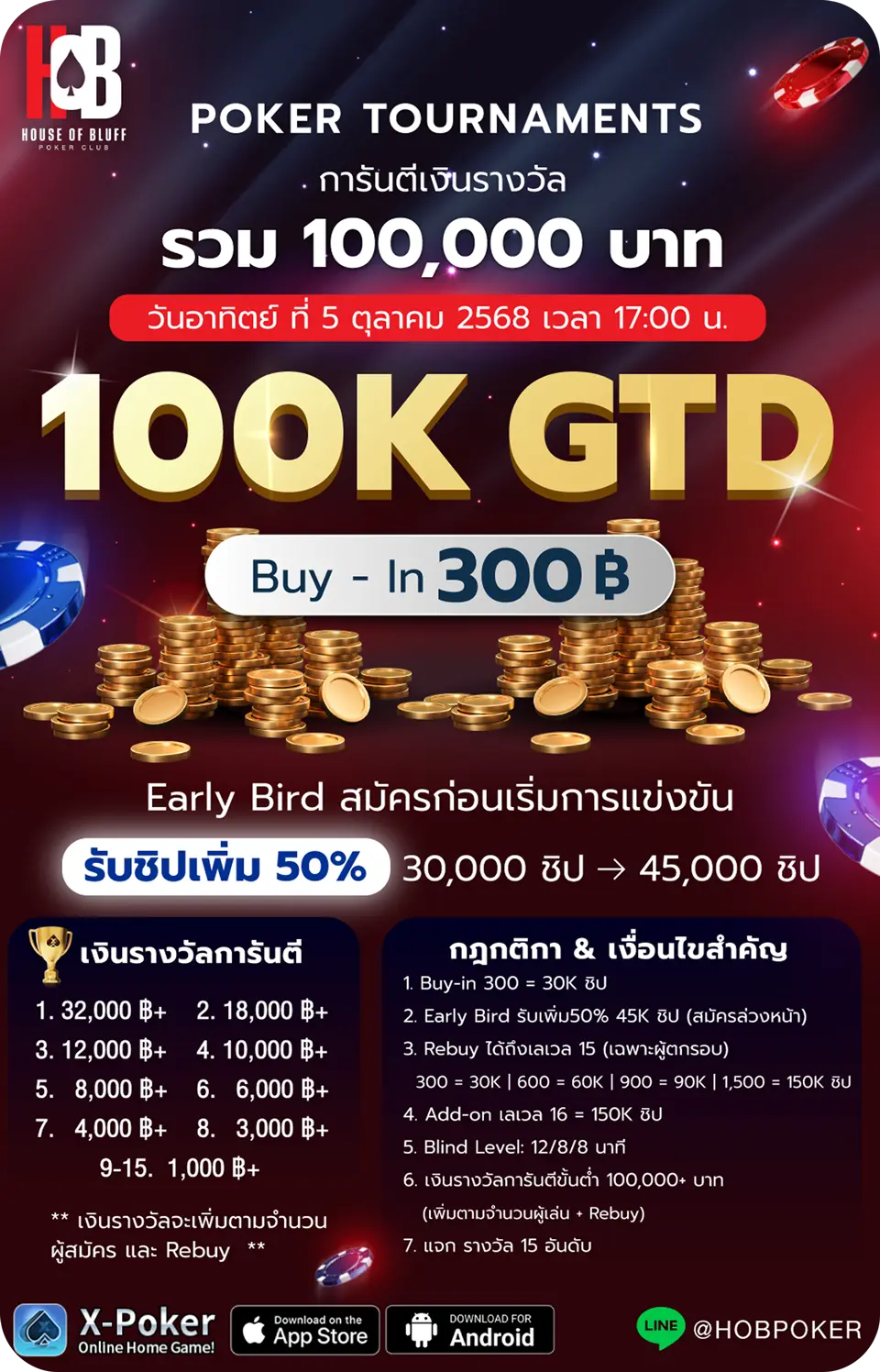 หากคุณกำลังมองหาเกมที่ไม่ได้อาศัยแค่โชคเพียงอย่างเดียว แต่เป็นเกมที่ต้องใช้ทั้งสมอง กลยุทธ์และไหวพริบ ในการเอาชนะคู่ต่อสู้ “โป๊กเกอร์คือคำตอบที่ใช่สำหรับคุณ” เกมไพ่สุดคลาสสิกที่ได้รับความนิยมไปทั่วโลก เพราะเต็มไปด้วยความสนุก ตื่นเต้นและท้าทายทุกวินาทีในการตัดสินใจ ไม่ว่าคุณจะเป็นผู้เล่นมือใหม่ที่อยากลอง สัมผัสบรรยากาศของการเดิมพันที่แท้จริง หรือเป็นเซียนไพ่ที่กำลังมองหาสนามประลองฝีมือกับเหล่าเซียนท่านอื่น โป๊กเกอร์พร้อมมอบประสบการณ์ที่ไม่เหมือนใครให้กับคุณทุกเวลา เข้ามาร่วมสนุกได้เลยวันนี้ที่แอป X-Poker แล้วค้นพบเสน่ห์ของโป๊กเกอร์ที่ทำให้ผู้เล่นนับล้านต่างหลงใหล พร้อมสนุกไปกับการวางกลยุทธ์ การควบคุมเกม การฝึกสมองวางแผน และลุ้นไปกับการคว้าชัยชนะในทุกตา!