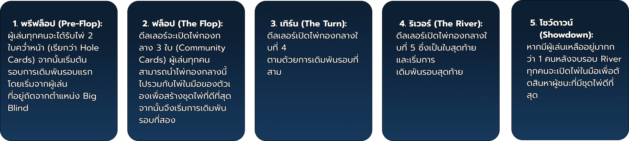 ตอบ: หากเป็นมือใหม่ แนะนำให้เริ่มที่ Texas Hold’em เพราะเป็นรูปแบบที่เล่นง่าย เข้าใจกติกาไม่ซับซ้อน และยังเป็นโป๊กเกอร์ที่ได้รับความนิยมที่สุดในโลก เมื่อมีประสบการณ์มากขึ้น จึงค่อยขยับไปเล่น Omaha หรือ Stud เพื่อเพิ่มความท้าทายมากขึ้น